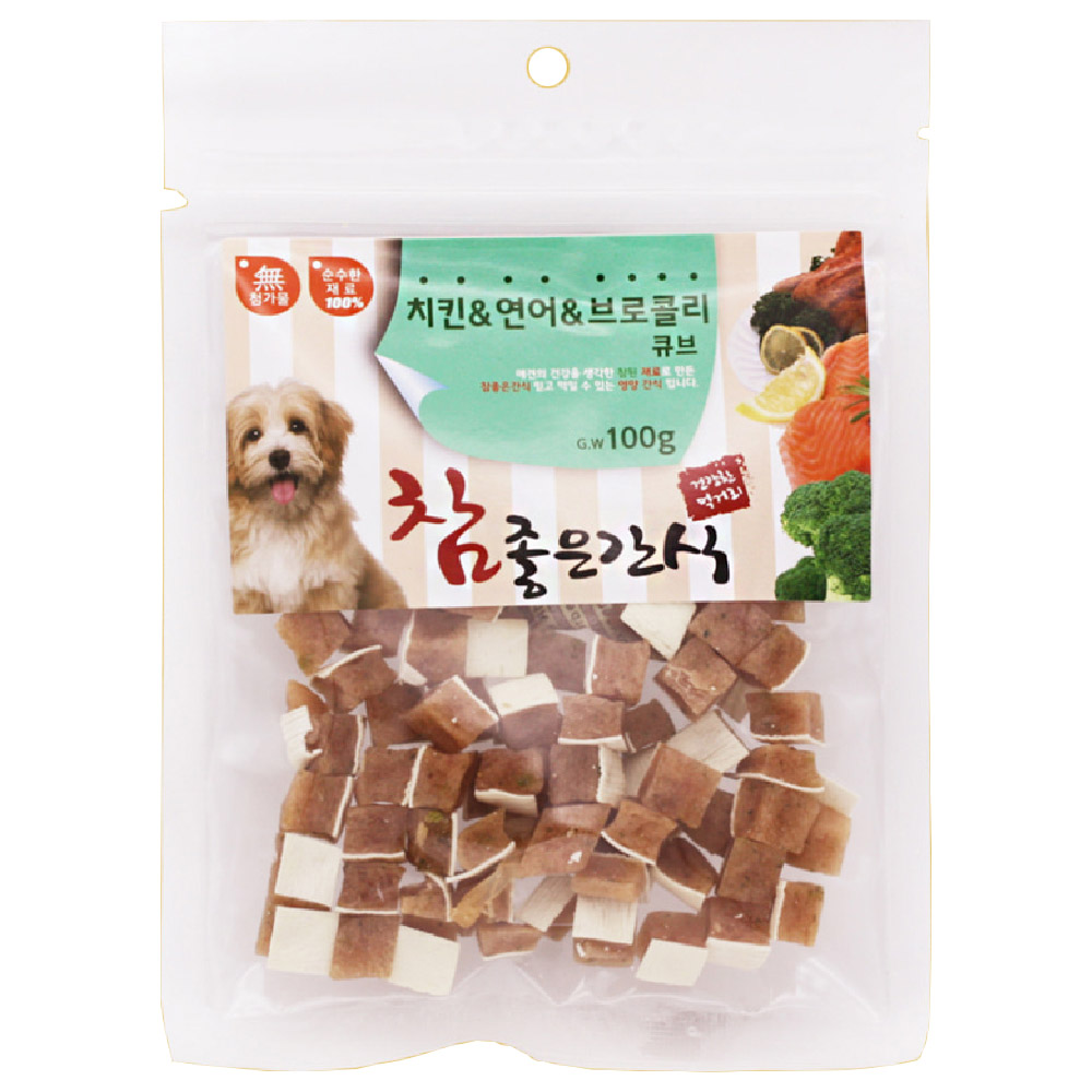 헬로도기 참좋은간식 치킨 연어 브로콜리 큐브 100g