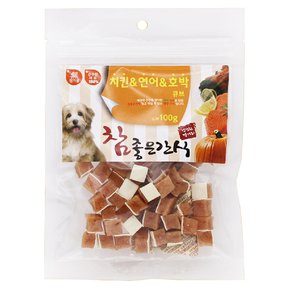 헬로도기 참좋은간식 치킨 연어 호박 큐브 100g