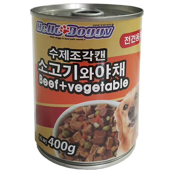펫더맨 헬로도기 강아지 간식 수제조각캔 소고기 야채 1Pack(400g x 6개)