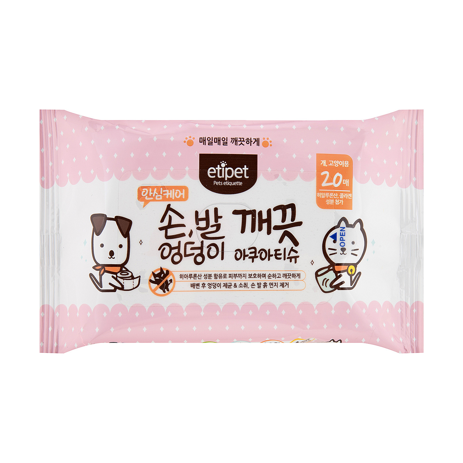 에티펫 손 발 엉덩이 깨끗 아쿠아 티슈 20매