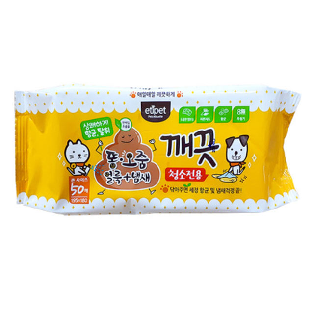 에티펫 똥오줌 깨끗 티슈(청소전용) 50매